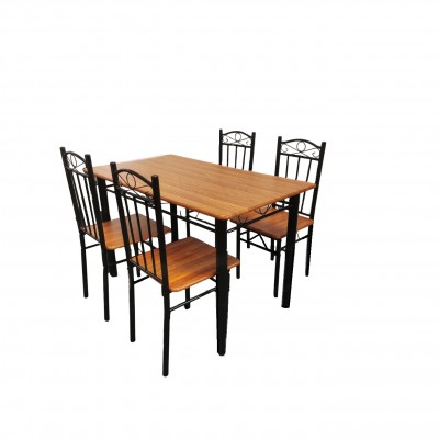 Комплекта е изработен с метална конструкция ,подходящ за градина и трапезария.Цвят Орех..